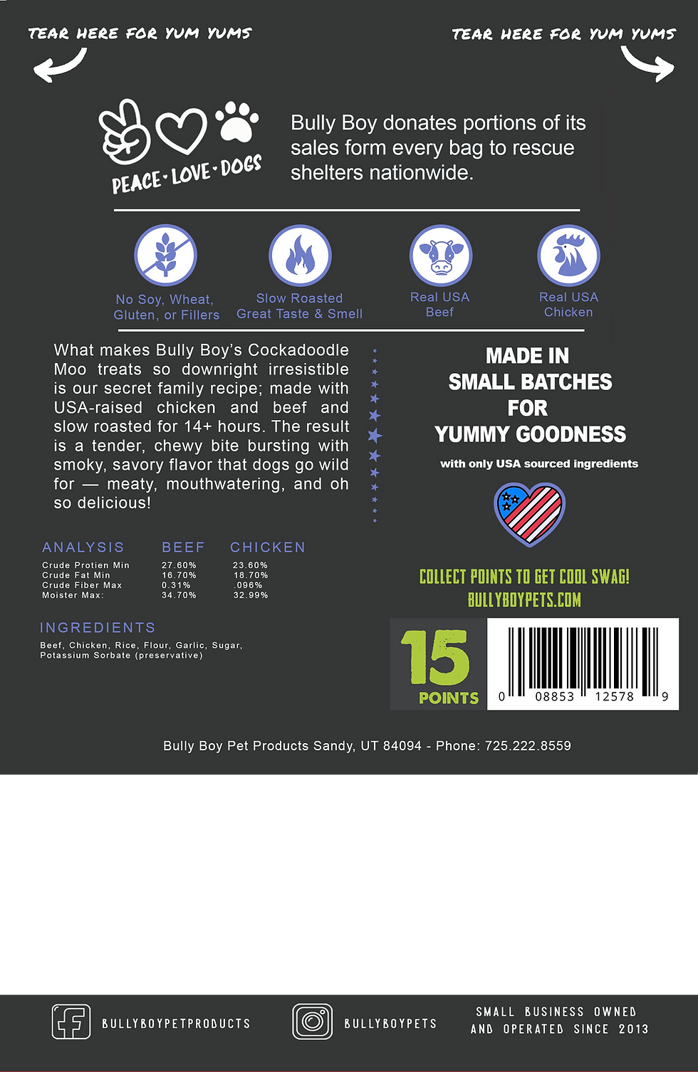 All of our treats use a secret family recipe and slow roasted for more than 14 hours giving them a rich smokeshouse smell and taste, are made in small batches, and hand packed for guaranteed goodness!